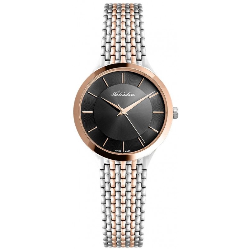 Elegantiškas šveicariškas moteriškas Adriatica laikrodis su įbrėžimams atspariu safyriniu stikliuku.