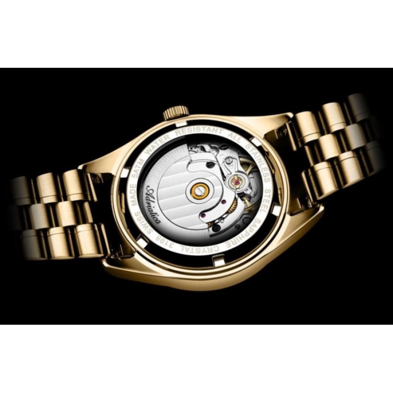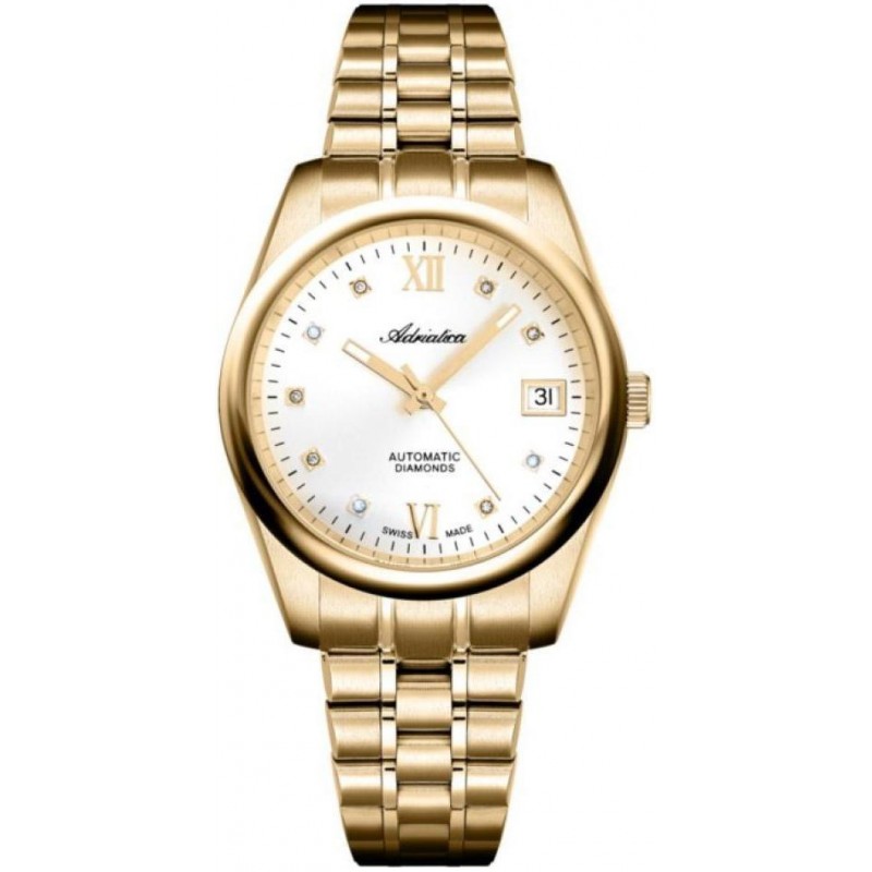 Auto-mechaninis šveicariškas moteriškas Adriatica laikrodis puoštas deimantais. Papildoma funkcija: datos langelis.