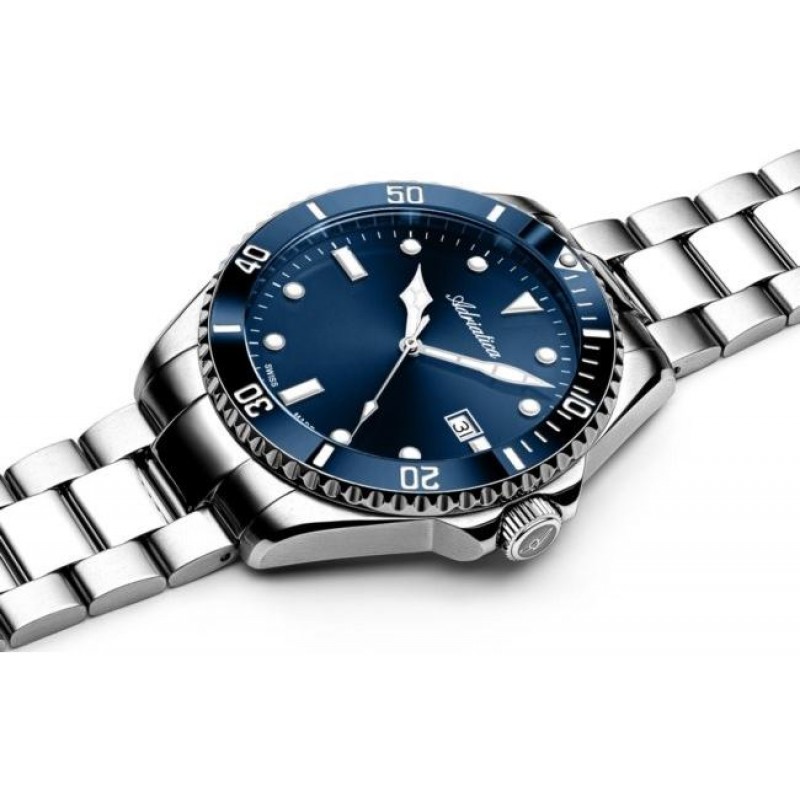 Prabangus šveicariškas vyriškas Adriatica laikrodis su įbrėžimams atspariu safyriniu stikliuku. Papildoma funkcija: datos langelis.
