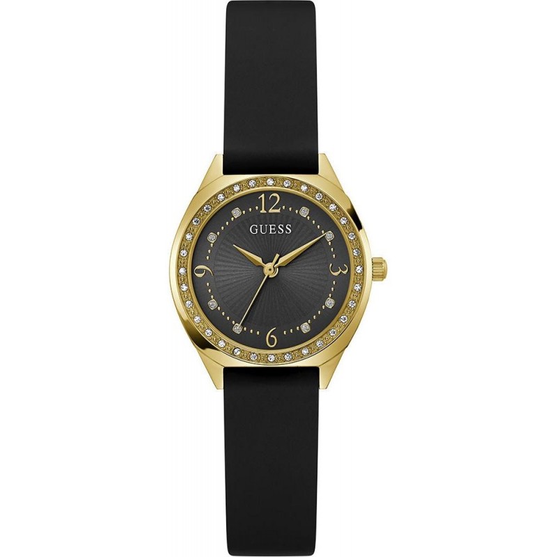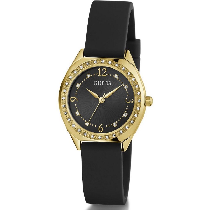 Modernus moteriškas Guess laikrodis silikonine apyranke.