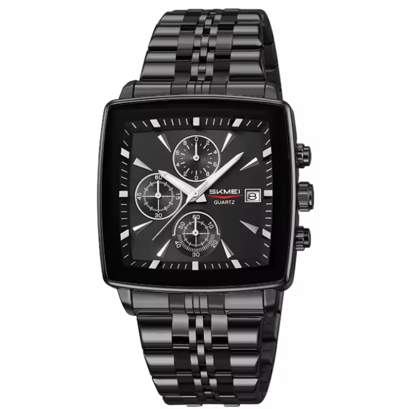 Klasikinis vyriškas Skmei laikrodis metaline apyranke. Papildomos funkcijos: chronografas, datos langelis.