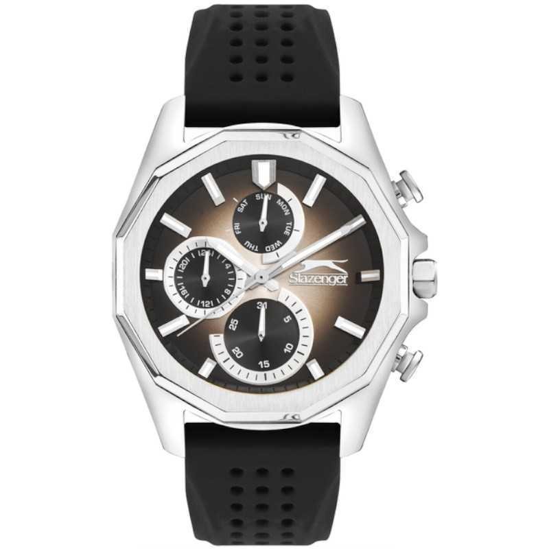 Modernus vyriškas Slazenger laikrodis silikonine apyranke. Papildomos funkcijos: antras laikas, kalendorius.