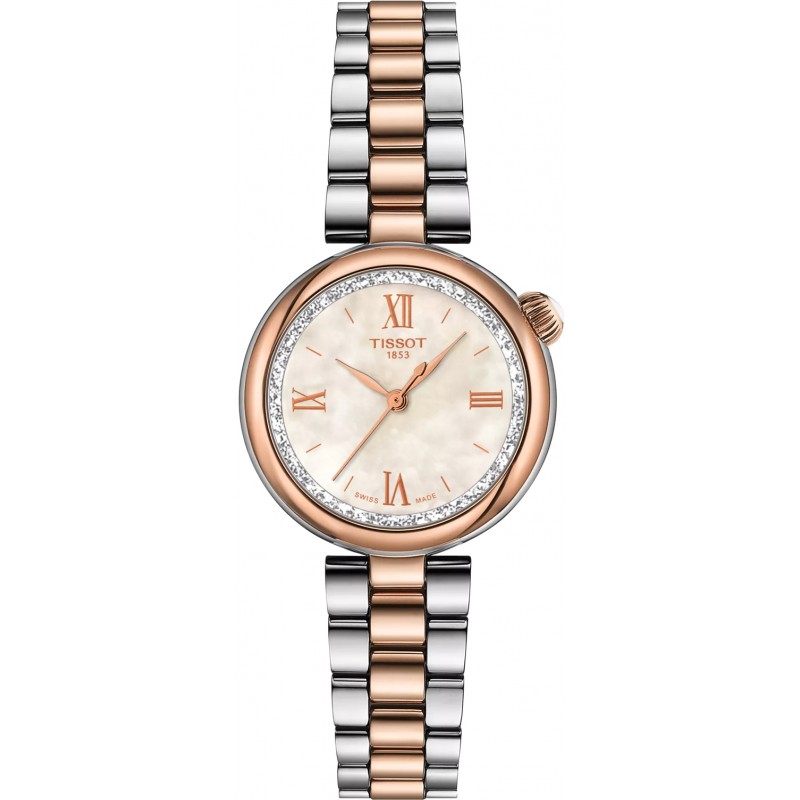 Prabangus šveicariškas moteriškas Tissot laikrodis su įbrėžimams atspariu safyriniu stikliuku.