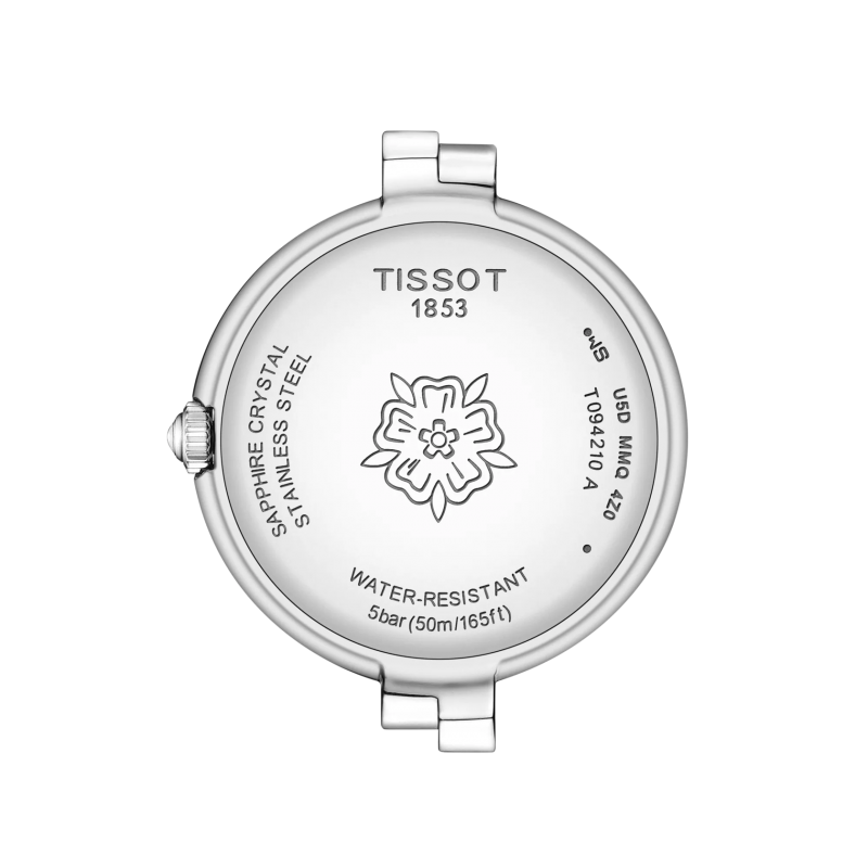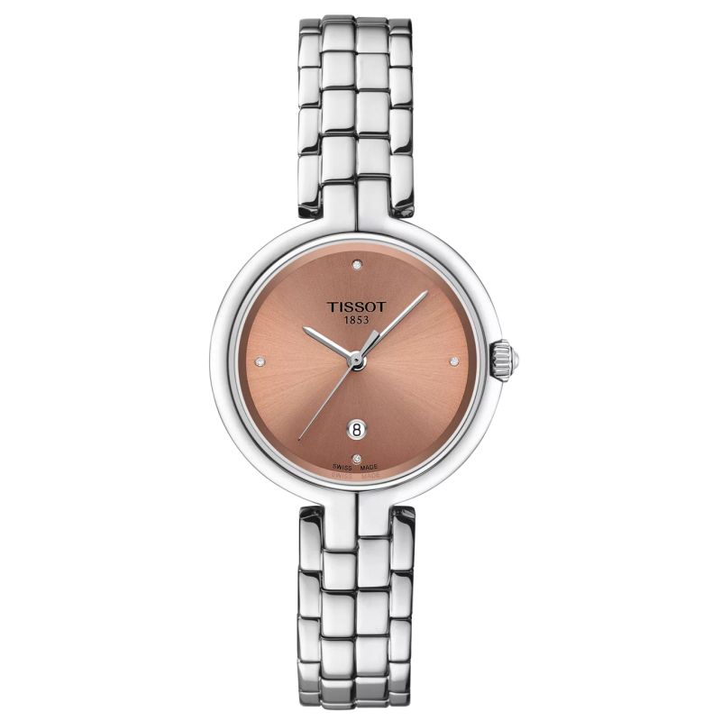 Prabangus šveicariškas moteriškas Tissot laikrodis su įbrėžimams atspariu safyriniu stikliuku. Papildoma funkcija: datos langelis.