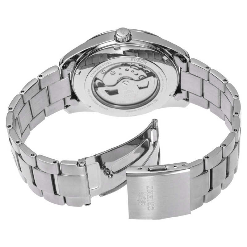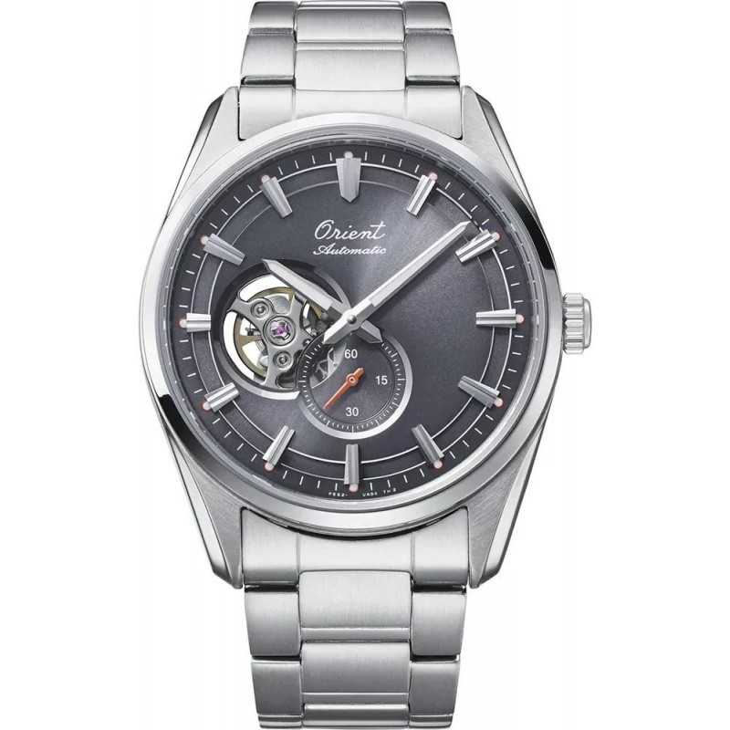 Prabangus auto-mechaninis vyriškas Orient laikrodis su įbrėžimams atspariu safyriniu stikliuku. Mechanizmo eigos rezervas 40 valandų.