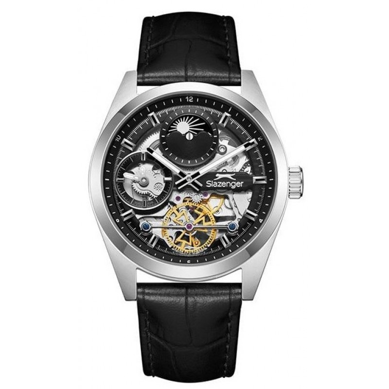 Auto-mechaninis vyriškas Slazenger laikrodis metaline apyranke. Papildoma funkcija: saulėtekio fazės rodymas.