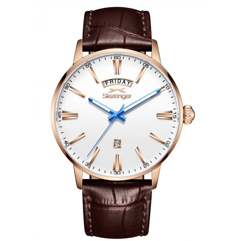 Klasikinis vyriškas Slazenger laikrodis odine apyranke. Papildoma funkcija: kalendorius.