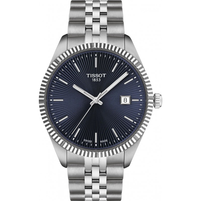 Prabangus šveicariškas vyriškas Tissot laikrodis su įbrėžimams atspariu safyriniu stikliuku. Papildoma funkcija: datos langelis.