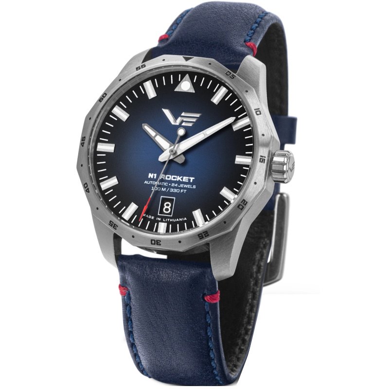 Auto-mechaninis vyriškas Vostok Europe laikrodis odine apyranke. Papildomos funkcijos: sukiojamas atskaitos žiedas, datos langelis, antirefleksinis stikliuko padengimas, ciferblato apšvietimas Super-LumiNova.