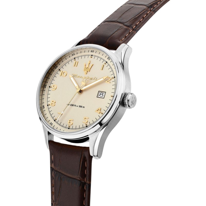 Klasikinis vyriškas Maserati laikrodis ypatingai atsparus vandeniui (WR 100m). Papildoma funkcija: datos langelis.