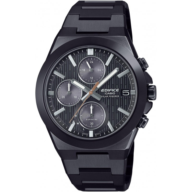 Prabangus vyriškas Casio laikrodis su įbrėžimams atspariu safyriniu stikliuku. Papildomos funkcijos: chronografas, datos langelis.
