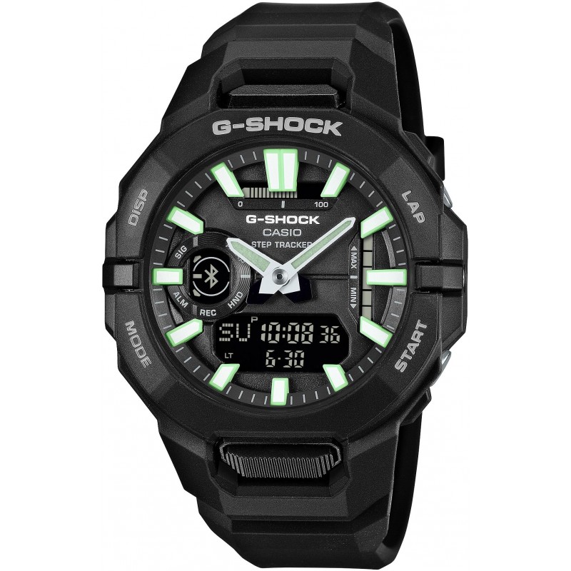 Sportinis vyriškas G-Shock Casio laikrodis ypatingai atsparus vandeniui (WR 200m). Papildomos funkcijos: apsauga nuo smūgių ir vibracijos, amžinasis kalendorius, antras laikas, atgalinis laikmatis, Bluetooth, laikmatis, LED apšvietimas, pasaulio laikas, garso įjungimas/išjungimas, signalas kas valandą, 5 žadintuvai, 12/24 val laiko formatas, žingsniamatis.
