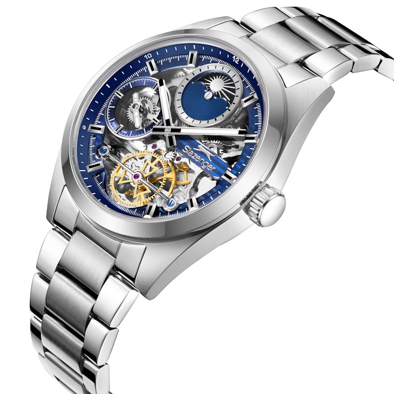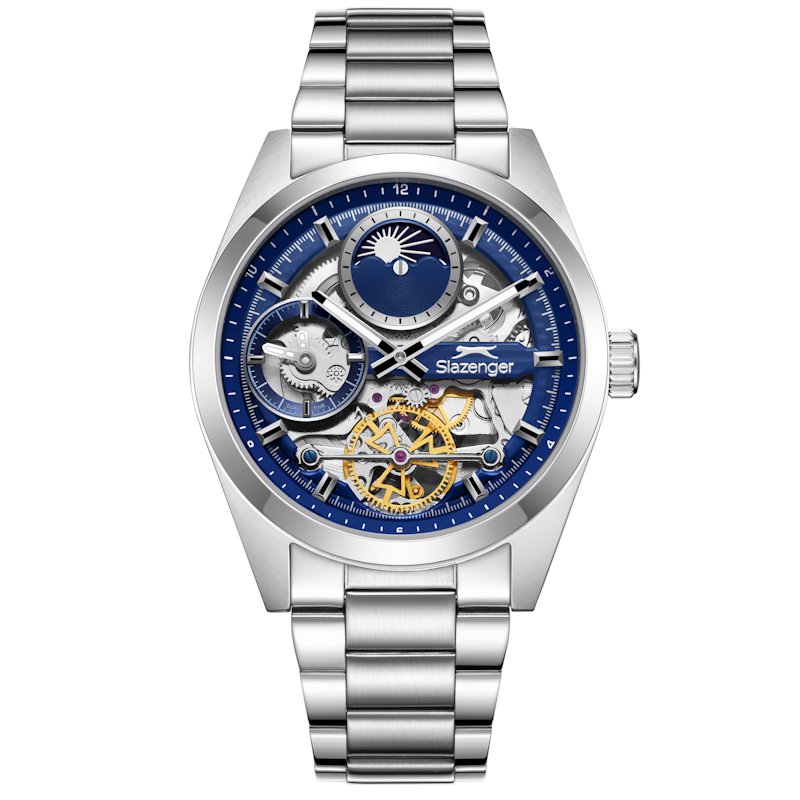 Auto-mechaninis vyriškas Slazenger laikrodis metaline apyranke. Papildoma funkcija: saulėtekio fazės rodymas.