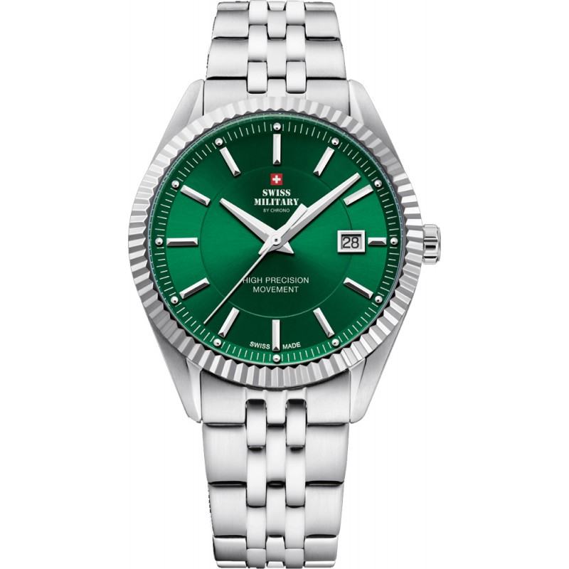 Klasikinis šveicariškas vyriškas S.Military laikrodis metaline apyranke,ypatingai tiksliu mechanizmu.Papildoma funkcija:datos langelis.
